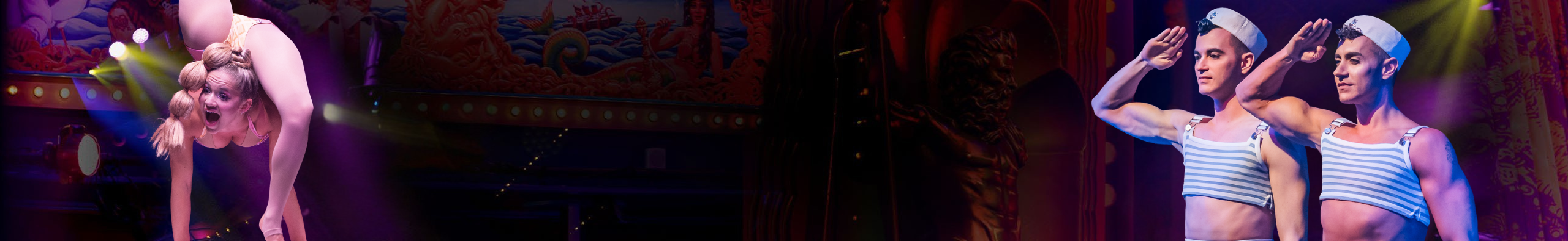 Filthy rich (and just plain filthy) The Gazillionaire dredged every broken-down circus, dive bar and detention center from Tokyo to Toledo in search of the world’s most sensationally talented, seductively beautiful artists. Whether this madcap crew of extraordinary exhibitionists is defying the laws of gravity or the limits of good taste, they live to perform for your pleasure—and theirs—on Absinthe‘s astonishingly intimate stage. So drink up and settle down, ’cause once the Green Fairy escapes her bottle, you’ll definitely be seeing things. Unapologetically raunchy and undeniably hilarious, Absinthe is for ages 18 and above.